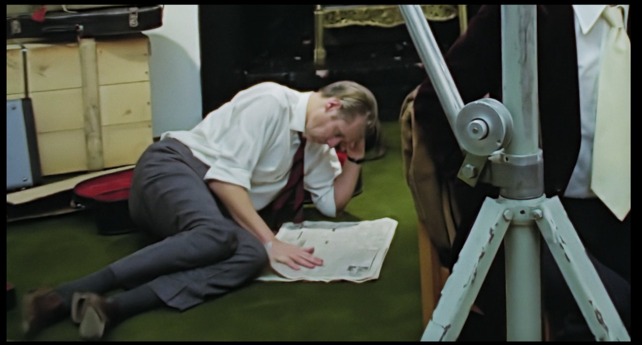 Here he is on the floor reading the paper while a millionth take of "Let It Be" dissolves into chaos.