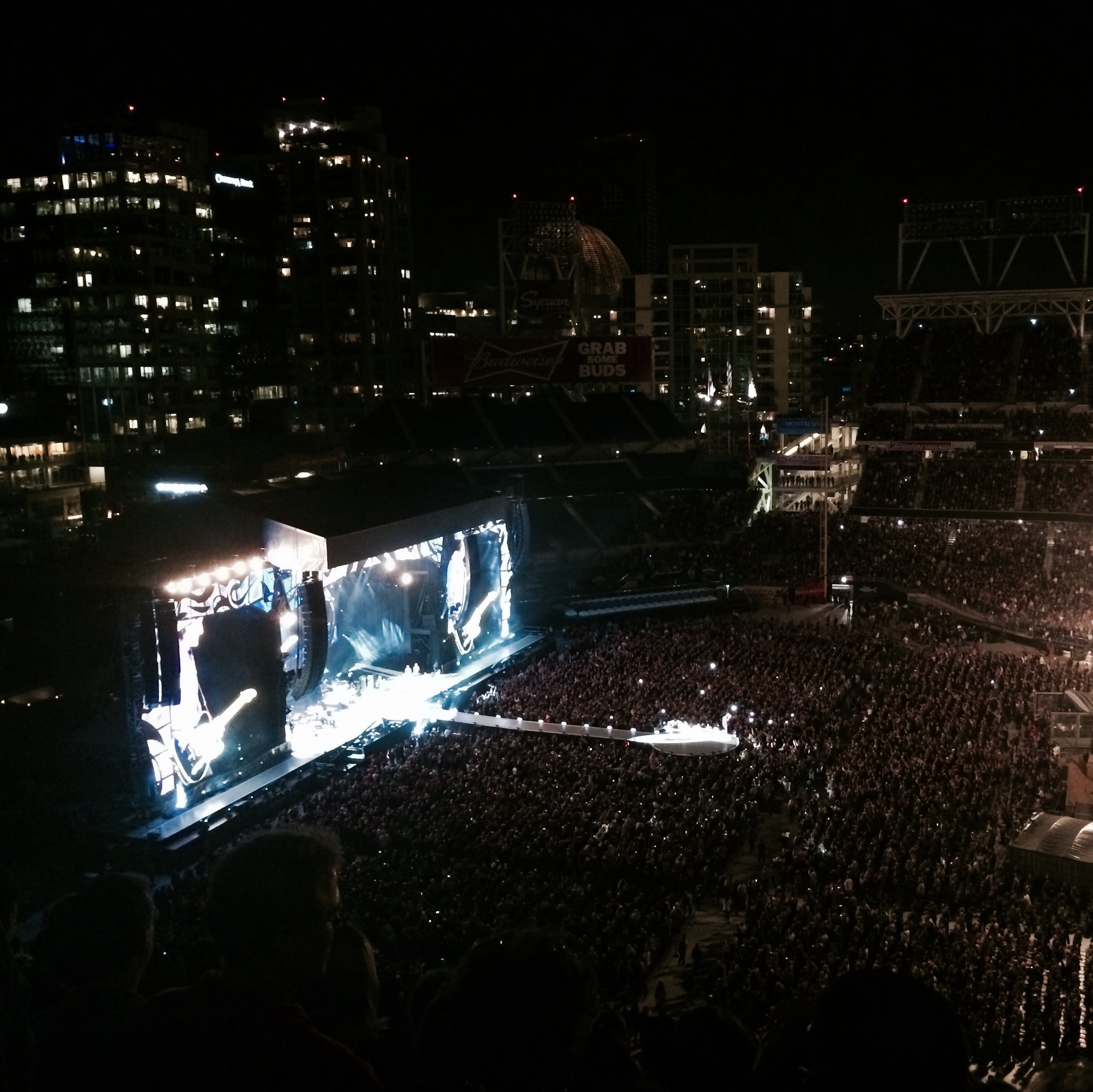 So that brings us to this past Sunday at the ballpark in San Diego. I have a confession to make here. Two songs in, as the show was just beginning and Mick was singing "It's Only Rock 'n Roll," I may or may not have teared up, JUST A LITTLE, FOR JUST A SECOND. A Rolling Stones concert is not really something to get emotional about, but at that moment they just happened to remind me how I fell in love with music in the first place. It was rock music that did it: the Beatles, the Stones, the Who, all the super famous and not-so-famous bands of the 60s and 70s. My entire musical philosophy can be summed up with that one lyric: It's only rock 'n roll, but I like it, OK?! And no matter how many people rag on the Stones for being old men who won't stop touring, I'm so glad they're still going, because it gives people like me a chance to experience a little slice of rock history.