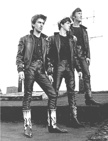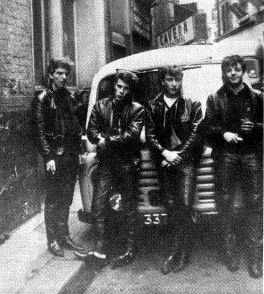 WOOOOOOOO let's just call this Beatles Week and now I have the perfect excuse to post countless entries about the Fab Four. Today's tribute: Pre-Fab-Beatles! Nothing against Brian Epstein (major Brian-post coming up sometime in the near future), but I loved the Beatles' look before he found them and "cleaned them up." MMMMMMM LEATHER: