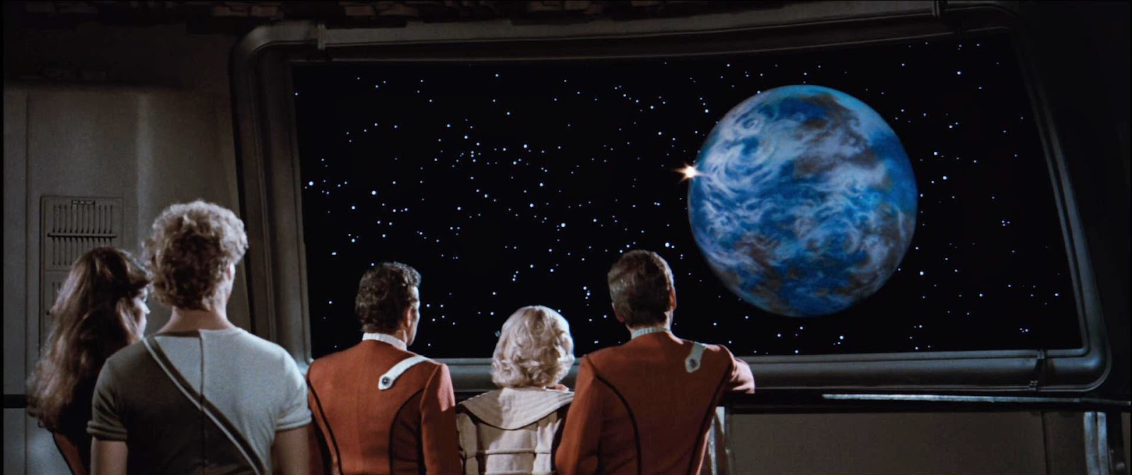 Then they all look out the observation deck at the Genesis planet, where Spock's body is, and Bones and Dr. Marcus make some lighthearted comments, and Kirk's face is full of so many feels, AND THEN THE MOVIE ENDS.