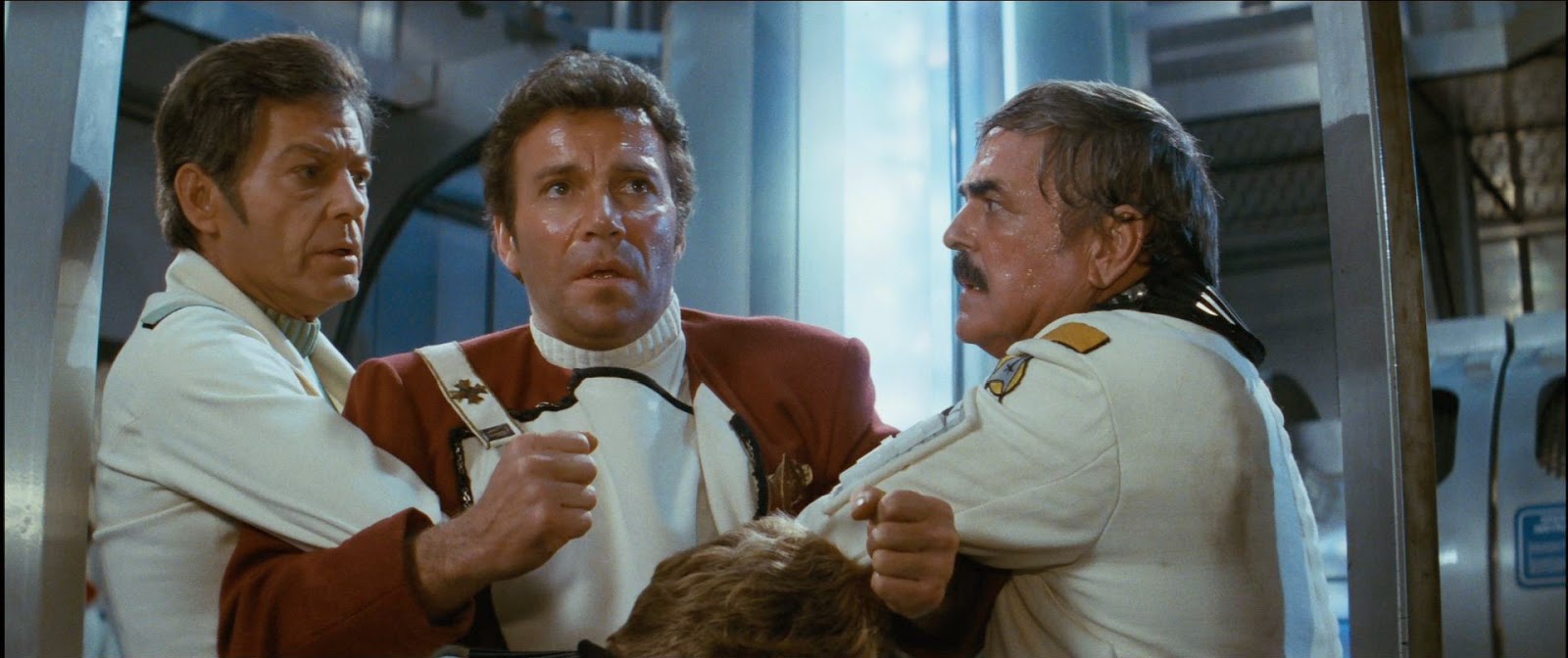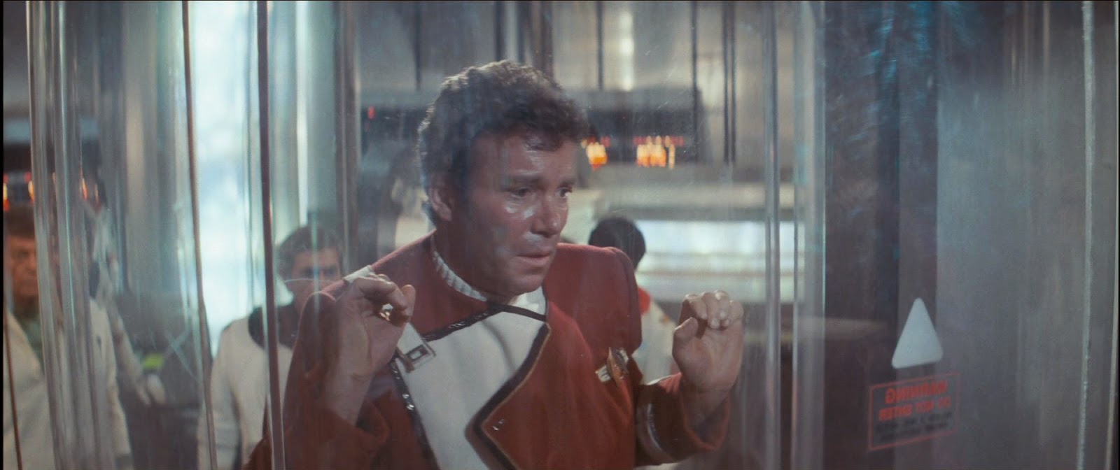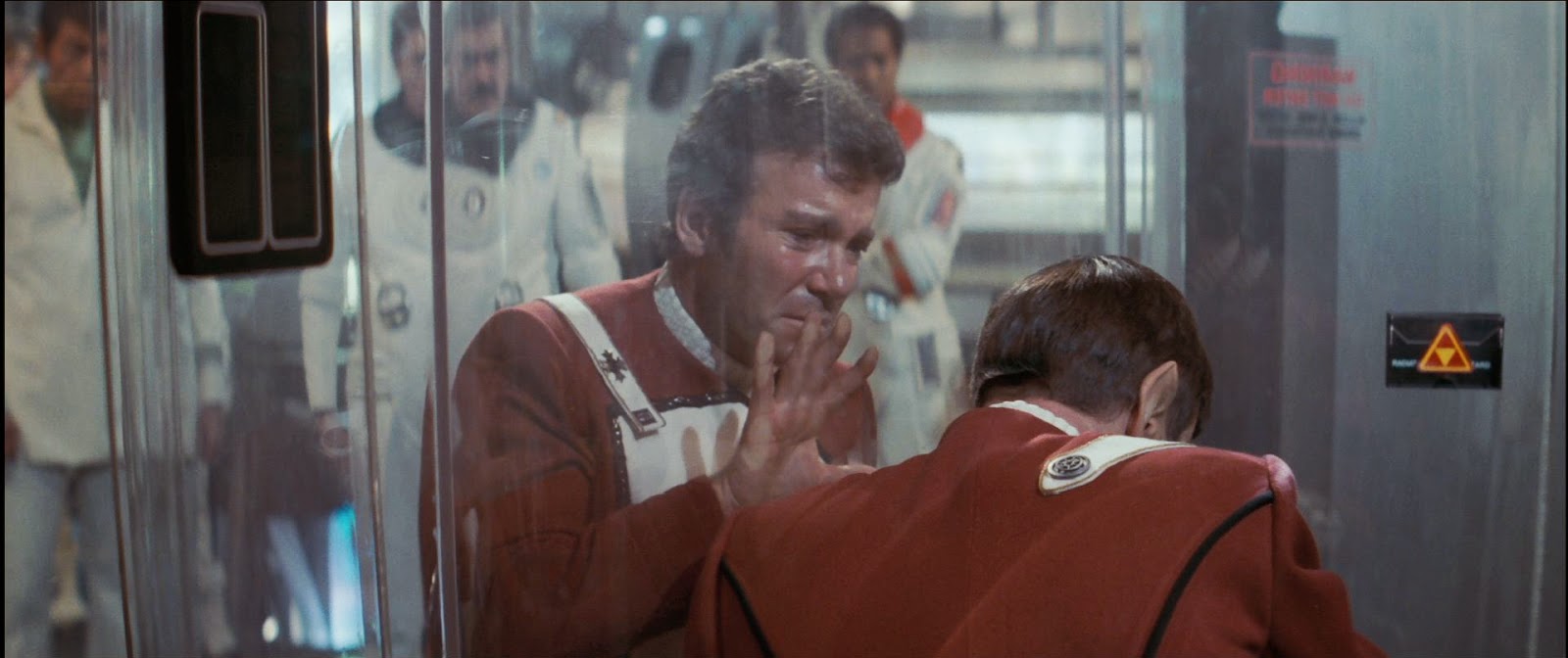 So I thought it'd be "fun" to explore the emotional roller coaster that is the ending of The Wrath of Khan, by putting together a collection of the most heartbreaking screencaps (thanks to this site), all of which occur in the last 15 or so minutes of the movie.