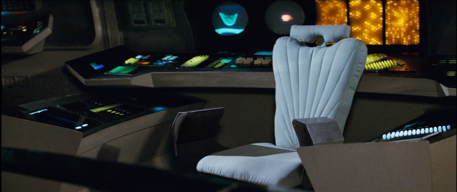 Here we get the first inkling that something's wrong: when Bones tells Kirk he needs to come to Engineering, and Kirk notices that Spock's chair is empty...